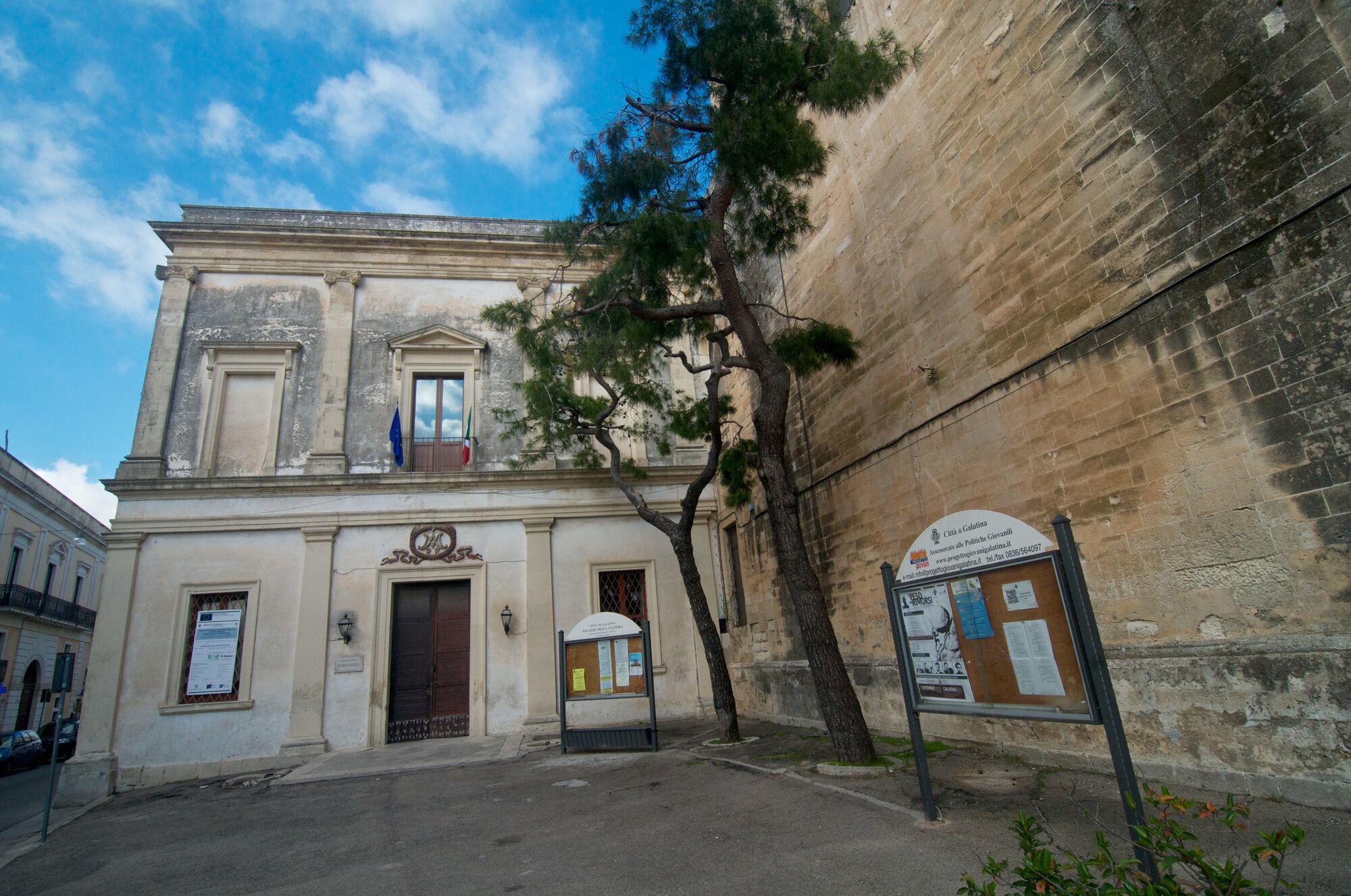 Teatro Cavallino Bianco Teatro Cavallino Bianco, a beautiful example of 20th-century architecture, stands in the center of Galatina. Built between 1947 and 1949 by Antonio De Gioia, it was named after Ralph Benatzky’s operetta and was the cultural hub of the city for many years. The theater is currently undergoing significant renovations, with its first performance of Verdi’s ‘Rigoletto’ opening in 1949. It has since hosted a range of theater companies, film screenings, and notable performances like the ‘Antigone e Sofocle’ by Bertold Brecht, staged by the Living Theatre in 1980.